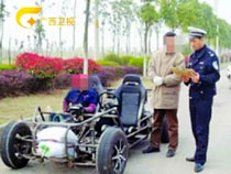 交警曝“裸奔跑车”上路照 无引擎盖车门车顶