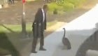男子发现鸭子被冻湖面 跳湖破冰救援