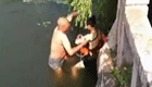 男子发现鸭子被冻湖面 跳湖破冰救援
