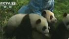 探访雅安新生熊猫宝宝 开心玩耍“攻击”记者