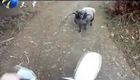 实拍:机车男被山羊撞翻 落荒而逃