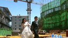 建筑工工地拍婚纱照 新郎感概找对象不易
