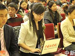 - 中新网报道:2010-3-14 09:57中新网记者吴歆在第一排占据了一个黄金位置,这几天她和中新社两会报道组的数十名同事一起,奔波于各个会场、驻地。今天终于迎来了两会报道的最后一战。