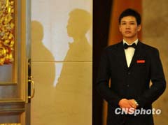 温家宝总理阔步走进金色大厅,现场快门声一片,闪光灯让整个金色大厅更加炫目。中新网记者 贾国荣 摄 - 中新网报道:2010-3-14 9:59温家宝总理来到了金色大厅,他向现场中外记者挥手致意。