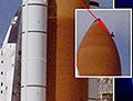 “哥伦比亚”号航天飞机在发射升空过程中,一块手提箱大小的绝缘泡沫从主燃料箱脱落后砸中飞机左翼,并造成上述部位隔热瓦破损。当航天飞机返回地球的过程中,超高温气体从缺口部位乘虚而入,最终导致机体因温度过高而解体,7名宇航员在胜利前夕悲剧性殉职。