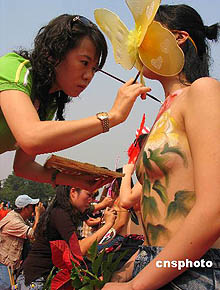 图:南京中秋上演人体彩绘