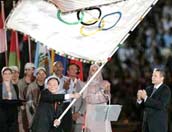 北京奥运会筹备大事回顾 王岐山在雅典接过奥运会旗 |