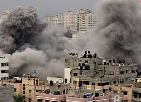第十九天 以军飞机在夜间共发动60多次空袭,攻击重点集中在靠近埃及边境的武器偷运地道。爆炸声和机关枪猛烈开火的声音14日响彻整个加沙城。目前已有上千名巴勒斯坦人死亡,4700人受伤。以军14日早上还在加沙城中心地带上空投掷了数十枚烟雾弹。另外,以色列北部14日遭到从黎巴嫩南部边境地区发射的火箭弹袭击,以方随即还击了4枚火箭。消息称,以色列高官15日将赴埃及进行停火谈判,而哈马斯称已经接受埃及停火提议。【详细】