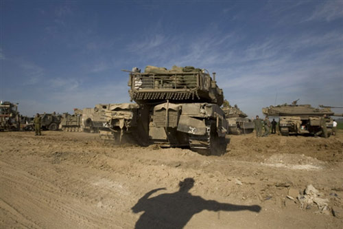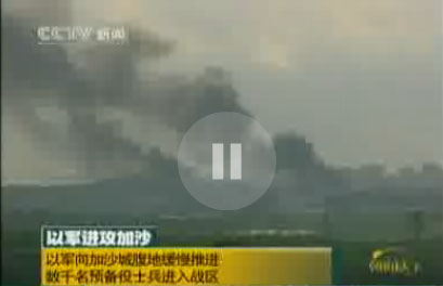 第十六天 以色列国防军发言人11日表示,以军已开始将预备役士兵派往加沙地带。这是以军采取行动以来,首次将预备役士兵派往加沙。以军还表示军事行动将要升级,“第三阶段”即将开始。当日,以色列继续动用战机、直升机和军舰进行攻击,哈马斯展开回击。另外还有不明身份的人在叙以边境向以军开枪,分析估计,这是要故意要挑起叙以紧张关系。目前,以军的大规模军事打击已造成至少901人死亡,超过3695人受伤。【详细】