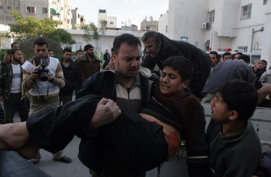 第十一日 以色列军队6日继续从海陆空三方面向加沙地带发动军事打击,连续两次击中联合国联合国在加沙开办的学校,导致55人死亡。另外,以军还空袭了一所由学校改造的难民营。另外,以军坦克还首次开进加沙地带南部最大城市汗尤尼斯,以军战机也对这座城市进行了轰炸。以色列总理奥尔默特提出了停火的两大条件:终止埃及和加沙地带之间的武器走私,终止巴勒斯坦武装组织针对以色列的所有攻击。当天,总死亡人数达660人,2950人受伤。【详细】