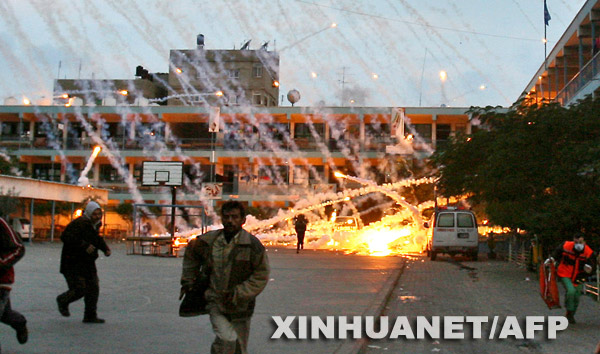 第十三日 以军8日对至少25个目标进行了打击,并袭击了巴勒斯坦武装人员的5个分队。同时,以军还在停火时段内袭击了联合国救援车队,造成两死一伤,遭到各方谴责。以色列军方称,当天有4枚来自黎巴嫩方向的火箭袭击了以色列北部城镇Nahariya,5人轻伤。黎巴嫩政府官员表示正调查此事。目前,军事打击已造成至少765名巴勒斯坦人死亡,超过3120人受伤,另外,以色列总理奥尔默特还暗示,攻势可能扩大。【详细】