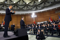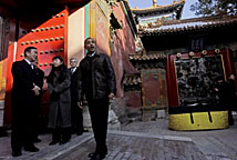 布什 任期之内4次访问中国。2008年8月8日出席北京奥运开幕式,成为首位在任内参加在他国举办的奥运开幕式的美国总统。 |