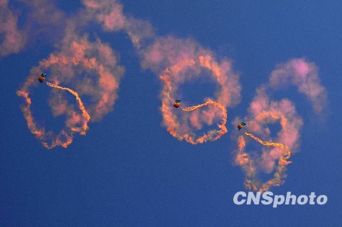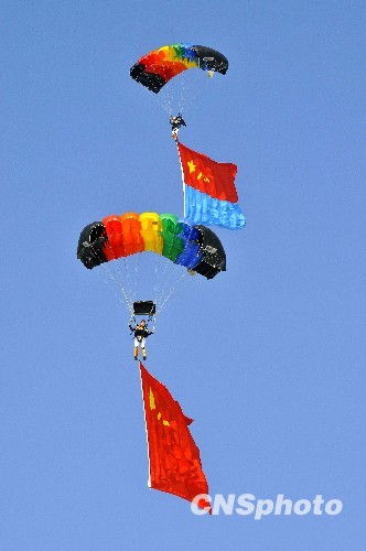 庆祝空军成立60周年跳伞表演犹如仙女散花