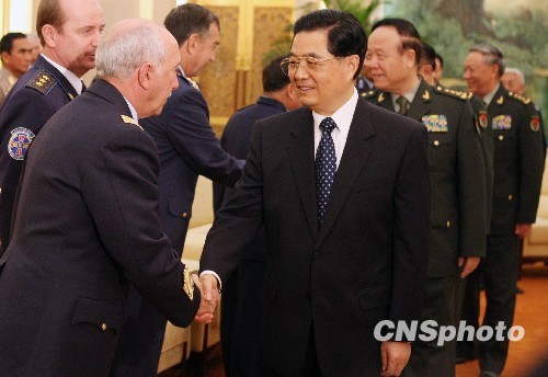 图:国家主席胡锦涛会见各国空军代表团(4)