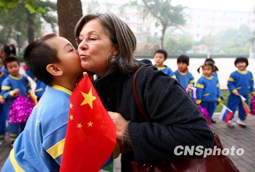 图:各国空军代表团随行夫人参观蓝天幼儿园(2)