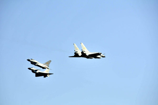 空军成立60周年纪念日进行首场飞行表演训练(2)
