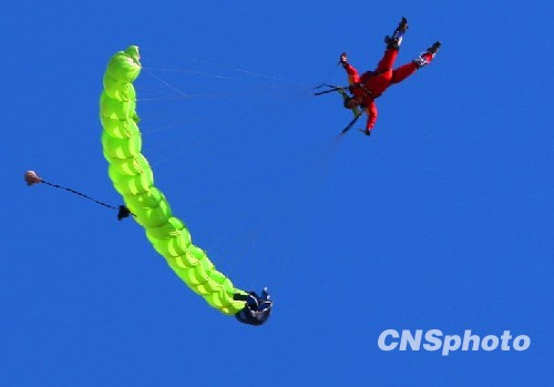 庆祝空军成立60周年跳伞表演犹如仙女散花(8)