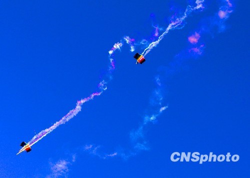 庆祝空军成立60周年跳伞表演犹如仙女散花(2)
