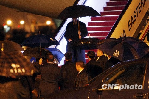 图:美国总统奥巴马乘“空军一号”抵达上海