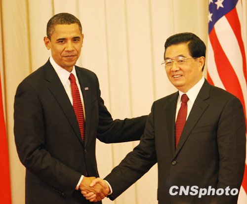 图:胡锦涛举行仪式欢迎美国总统奥巴马访华