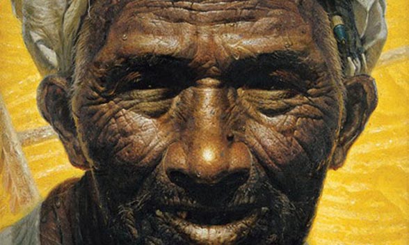 罗中立《父亲》一画曾获“中国青年美展”一等奖,其画面具有一种悲剧性的震撼力,表现了生活在贫困中的老农形象;老农开裂的嘴唇、满脸的皱纹以及手中粗劣的碗等等写实的描绘,消除了观赏者与作品之间的隔膜,画家藉此来对传统文化和民族进行反思。