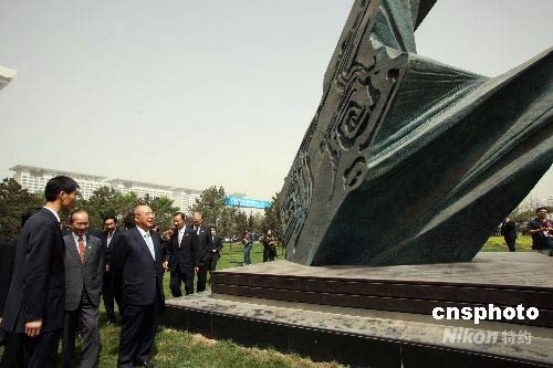 图:吴伯雄参观台湾艺术家雕塑作品"水袖"