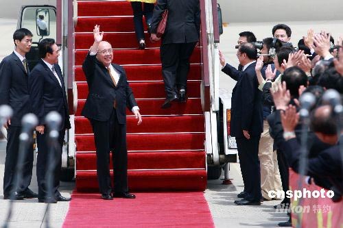 图:中国国民党主席吴伯雄一行抵达上海(2)