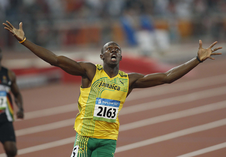 鸟巢赛道上的“黑色闪电” 博尔特改写200米纪录
