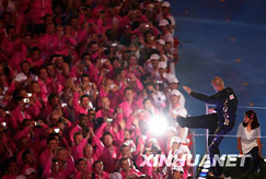 烟花再次璀璨,歌声汇成海洋。北京奥运会圣火缓缓熄灭,五环旗交与英伦。十六天,健儿们驰骋赛场屡创佳绩;十六天,东道主尽心尽力无微不至;十六天,朋友们相聚言欢增进情谊;今宵,中国赢得赞誉——“无与伦比”。