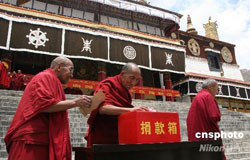 拉萨哲蚌寺僧人为四川地震灾区捐款
