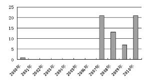 2000年以来年内出现百元股的个数统计