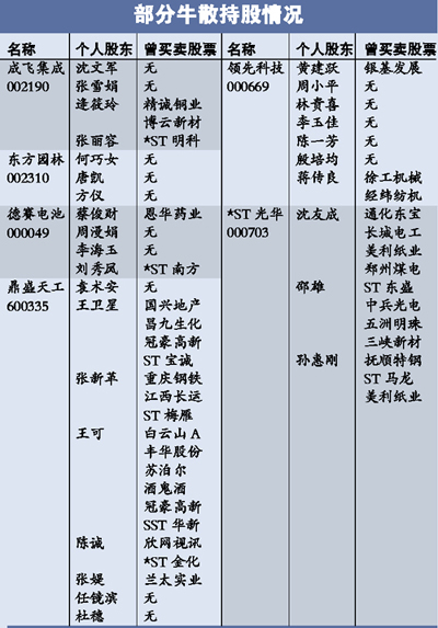 前期的牛散刘芳、叶晶、黄木顺、邹瀚枢和钱小妹等,尽管受到的关注减少,但并未从上市公司中消失。半年报显示,刘芳和叶晶又双双介入澳洋顺昌,分别持有147万股和89万股。钱小妹则押宝南洋科技和汉王科技。
