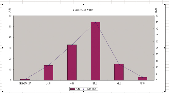 另外,上市公司最大个人股东资产市值排名前十的只有一人不到40岁,最年轻的35岁,最大的52岁,当中一半的人是硕士。这与创业板主要扶持的高新科技产业很是相衬。管理者不再只是传统意义上的实干型,或是暴发户。面对信息时代的来临,高管们都意识到知识的武装已经与企业的长远发展息息相关,并及时进行自我增值。