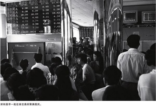 这是在深圳拍摄的最早一批证卷交易所聚满股民。 图片来源:新华网