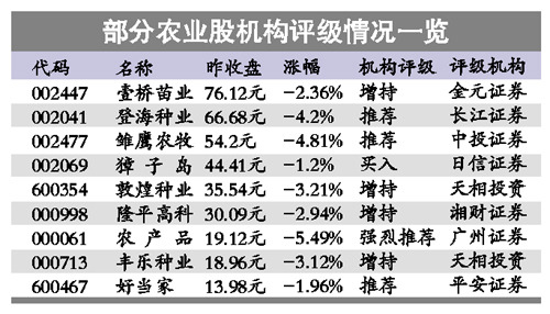 渤海证券农业分析师表示,短期的回调并不会改变中期的向好,农业板块在春节前将会有一波行情,建议重点关注新希望、海大集团、大北农、雏鹰农牧等。