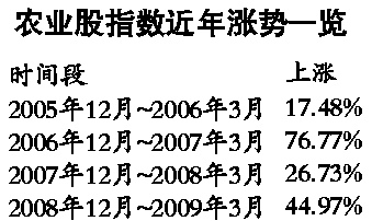 不过,市场分析师表示,无论一号文件的方向如何,都将给农业板块带来投资机会。在历史上,农业股多在上年的12月至来年的3月走势强于大盘。