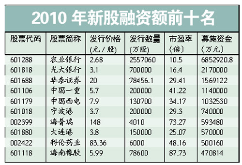 2010年A股新股发行落下帷幕 全年348家公司直接从股市融资近5000亿元