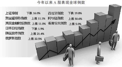 放眼全球股市,A股市场今年的表现有些不尽如人意。从全年的涨跌幅看,上证综指不仅落后于走势强劲的阿根廷、印尼、泰国等新兴市场,与稳步攀升的德国、美国等成熟市场相比,也逊色不少。