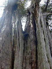 阿里山神木于1997年7月倒伏后,“鹿林神木”成为阿里山区的新树王;这棵巨大的神木,树干好像是一座满布青苔的千年石壁,高耸入云,非常壮观。(来源:台湾“中央社” 江俊亮摄)