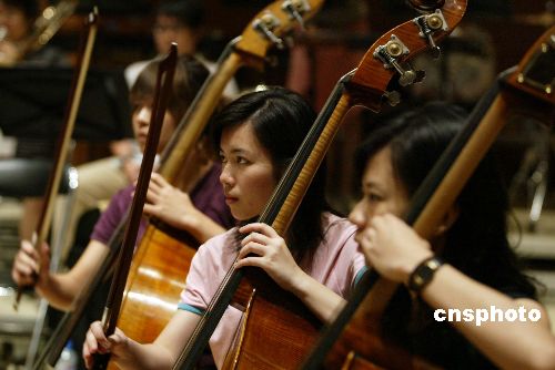 七月十一日,台湾“奇美管弦乐团”在北京举行新闻发布会宣布,该团将于本月十二日到二十日首次在北京、南京、镇江、宁波、上海、佛山等地举行六场名为“夏沁音乐《奇美世界名琴仲夏夜》奇美管弦乐团大陆巡演音乐会”,旨在促进两岸文化的交流,增进两岸同胞相互间的了解和友情。图为乐团进行在北京首场演出前的紧张排练。中新社发 任海霞 摄