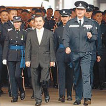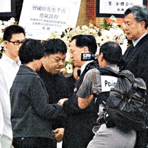 | 受伤警员洗家强 坐轮椅来痛别友人