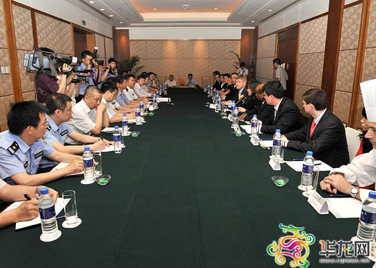 重庆希尔顿酒店管理层、业主方向警方检查验收组汇报整改情况。市公安局供图