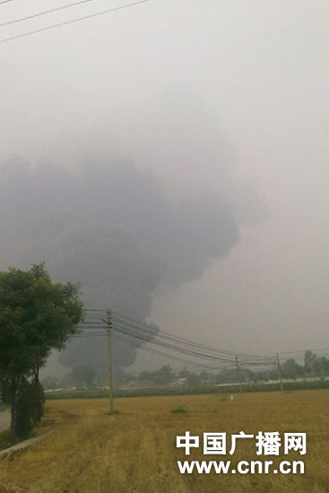 北京房山一仓库发生火灾 黑烟升空高近千米(3)