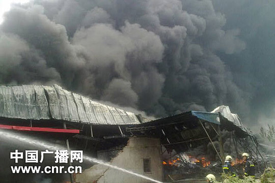北京房山一仓库发生火灾 黑烟升空高近千米(4)