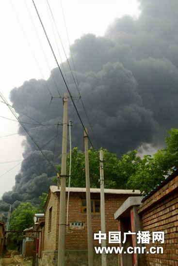 北京房山一仓库发生火灾 黑烟升空高近千米(5)