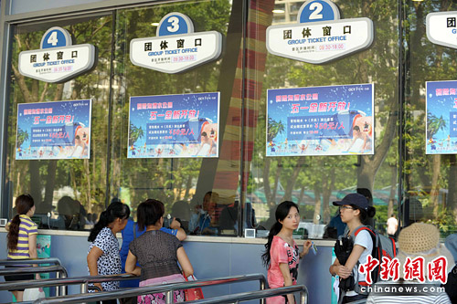 图为少量游客在大侠谷售票窗口咨询。中新社发 陈文 摄