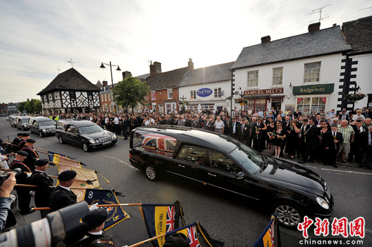 7名牺牲的军人分别来自皇家海军陆战队第40突击队和第一营的梅尔恰安团,他们的遗体先是从阿富汗运回了莱纳姆皇家空军基地,再送到城里参加送别仪式。