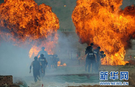 特警队员在演练。李文 摄