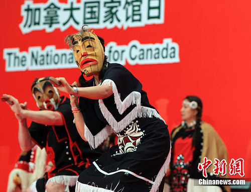 加拿大原住民舞蹈为世博加拿大馆日庆典助兴。中新社发 潘索菲 摄