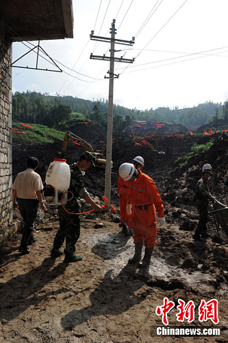 图:贵州关岭山体滑坡搜救现场酷热难耐(2)